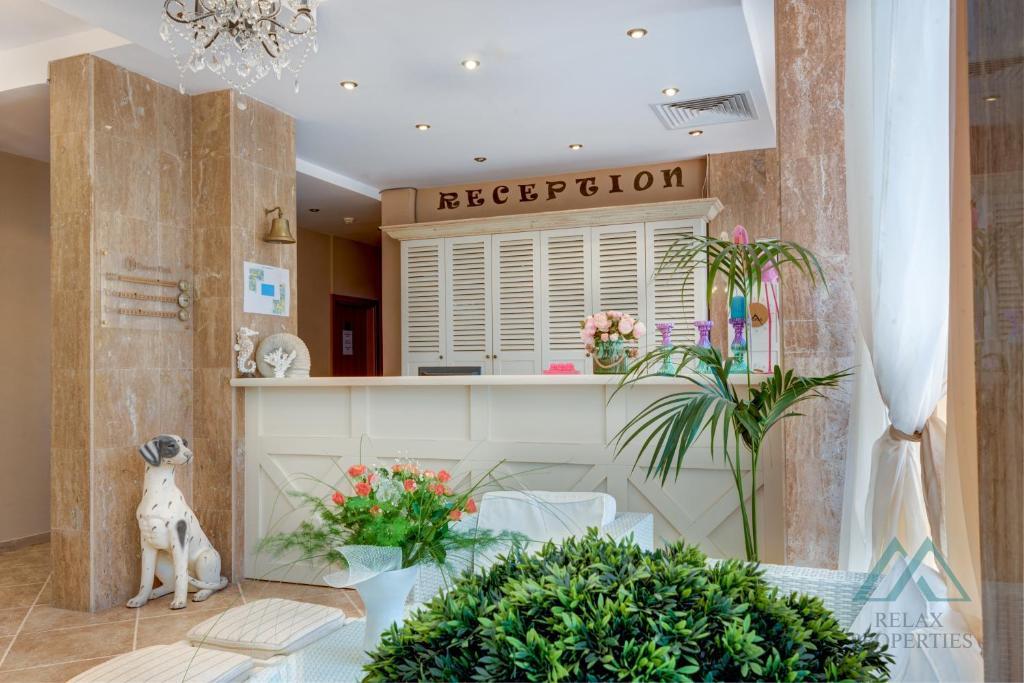bar a restaurace u bazénu lobby bar grilovací zóna dětský koutek a stolní tenis Majitelé mají také bezplatný přístup do lázeňské zóny v sousedním komplexu Izida Palace (sauna, vířivka, parní lázeň a další služby).