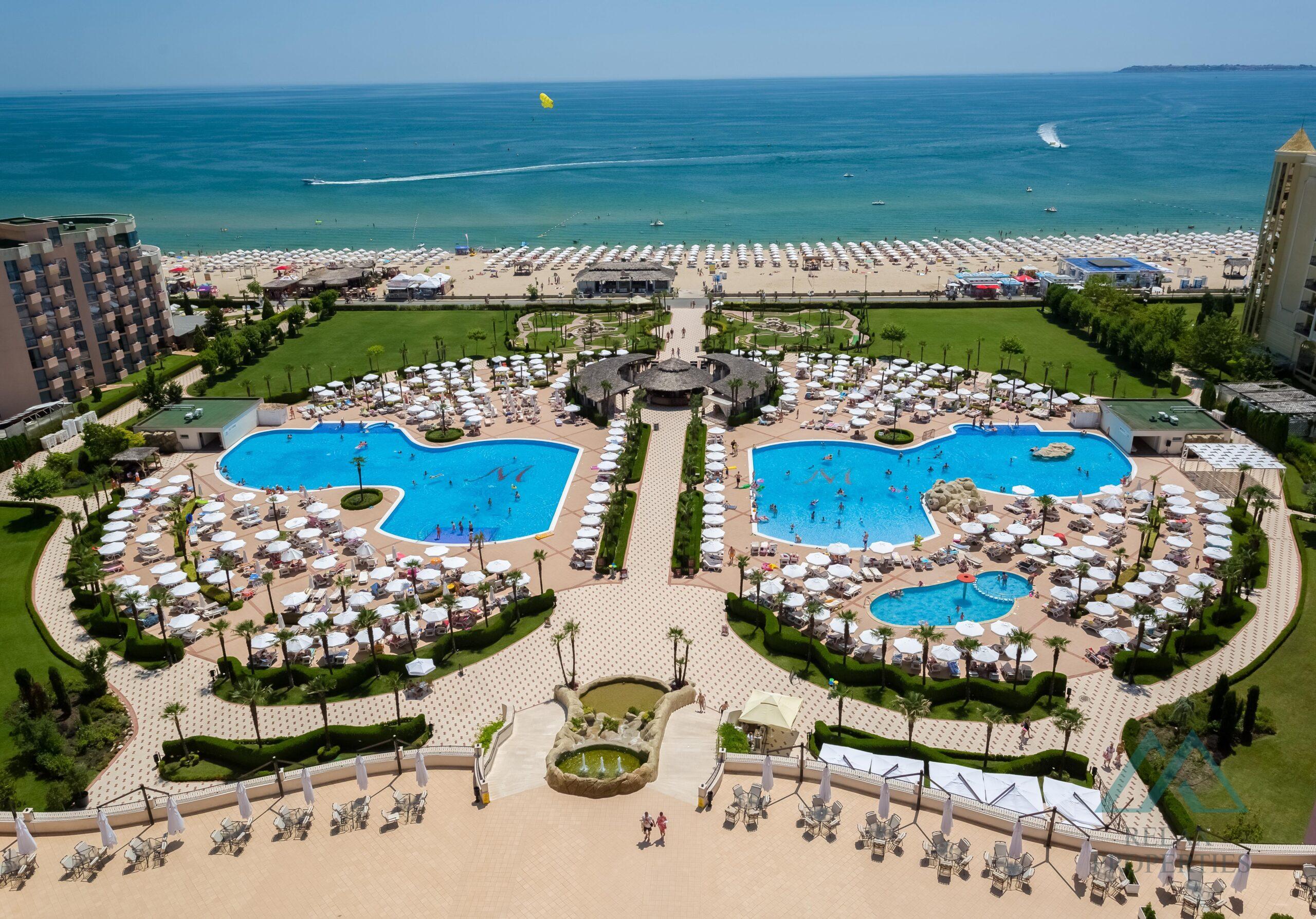 O Majestic Beach Resort Tento moderní plážový resort se nachází přímo na pobřeží, na krásné dlouhé písečné pláži Slunečného pobřeží, na začátku 8 km dlouhé promenády vedoucí do historického města Nessebar (UNESCO). Resort je známý svými vysoce kvalitními službami, širokou nabídkou aktivit a zábavních programů pro děti i dospělé. Hosté mohou využívat: 2 venkovní bazény, dětský bazén a snack bar u bazénu