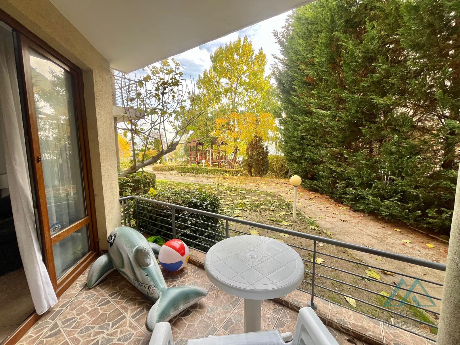 Byt se nachází v přízemí a má výhled na moře a upravený park komplexu. Nemovitost je ve výborném stavu, plně zařízená a připravená k okamžitému nastěhování nebo pronájmu.