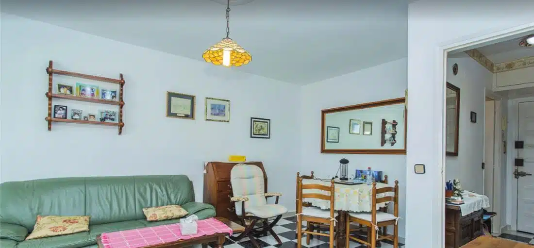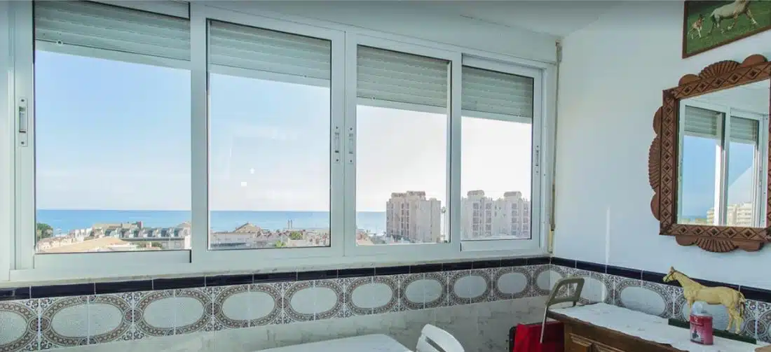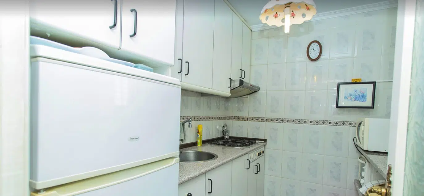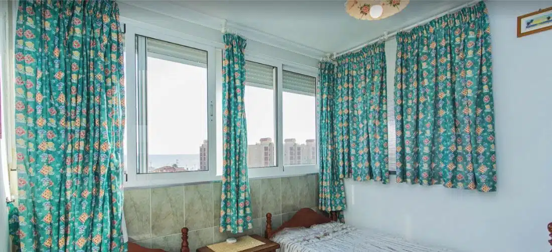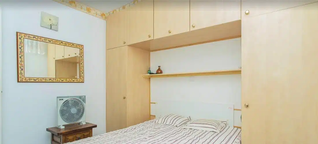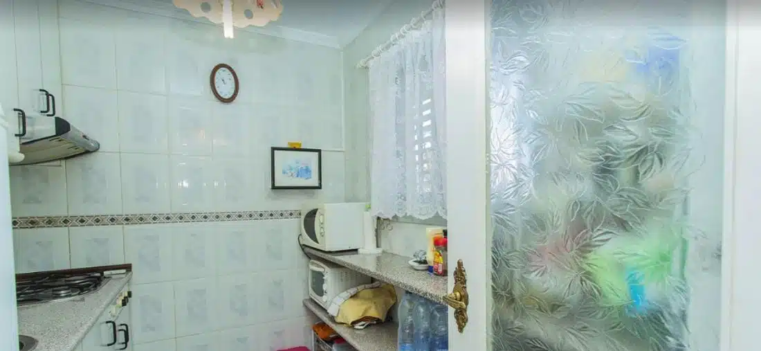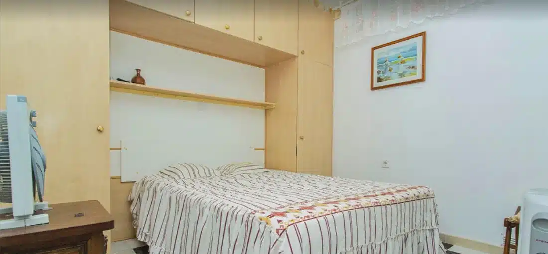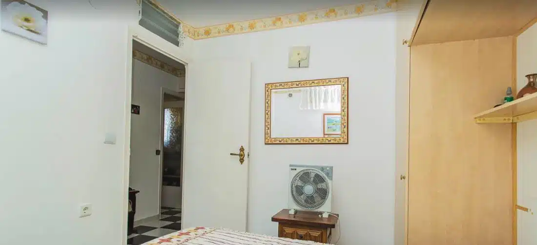 Byt se nachází ve 4. patře budovy s výtahem a má obytnou plochu přibližně 45 m². Dispozice se skládá z obývacího pokoje propojeného s jídelnou, samostatné plně vybavené kuchyně, 2 pohodlných ložnic, koupelny se sprchovým koutem a vstupní haly ideální pro úložné prostory. Obývací pokoj se otevírá na prostornou prosklenou terasu, která nabízí příjemné celoroční posezení a krásný panoramatický výhled na Středozemní moře – ideální místo k odpočinku nebo posezení a sledování západu slunce.