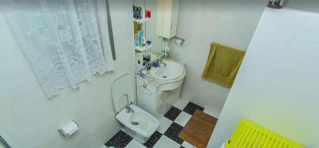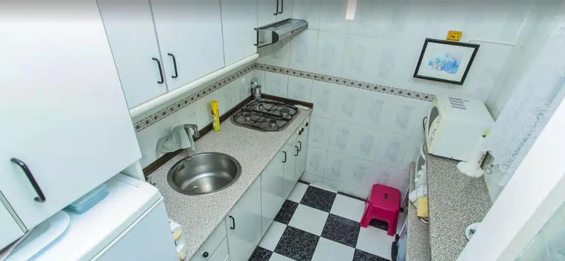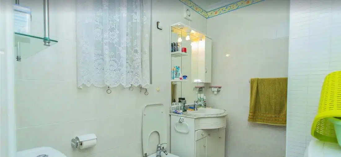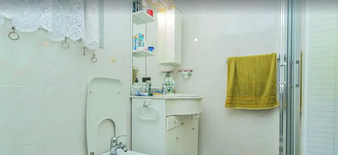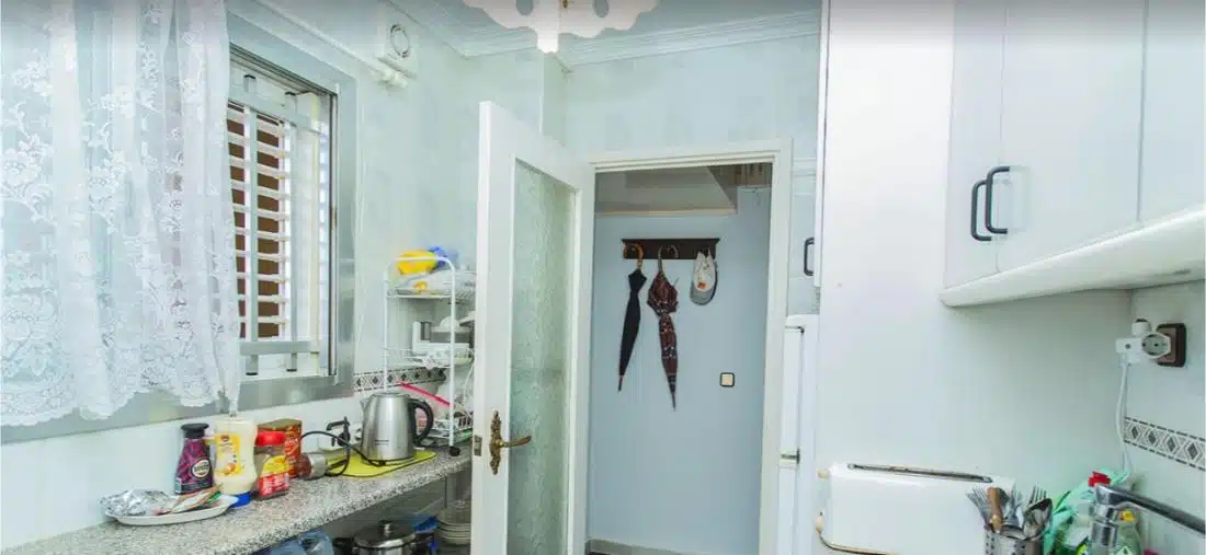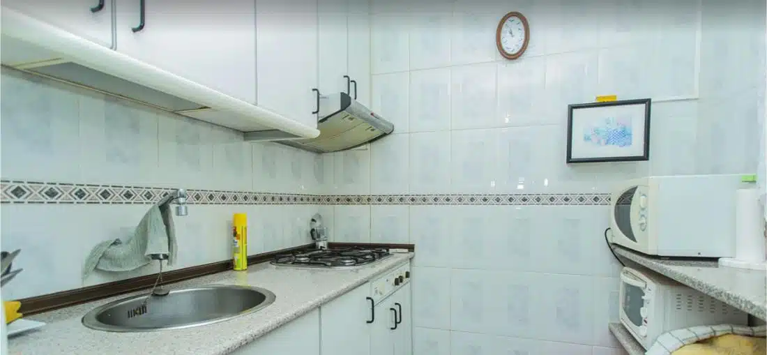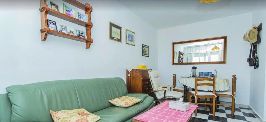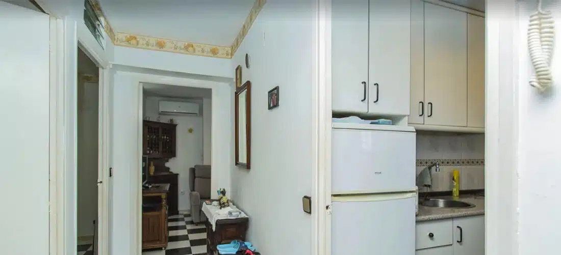Byt se nachází ve 4. patře budovy s výtahem a má obytnou plochu přibližně 45 m². Dispozice se skládá z obývacího pokoje propojeného s jídelnou, samostatné plně vybavené kuchyně, 2 pohodlných ložnic, koupelny se sprchovým koutem a vstupní haly ideální pro úložné prostory. Obývací pokoj se otevírá na prostornou prosklenou terasu, která nabízí příjemné celoroční posezení a krásný panoramatický výhled na Středozemní moře – ideální místo k odpočinku nebo posezení a sledování západu slunce.