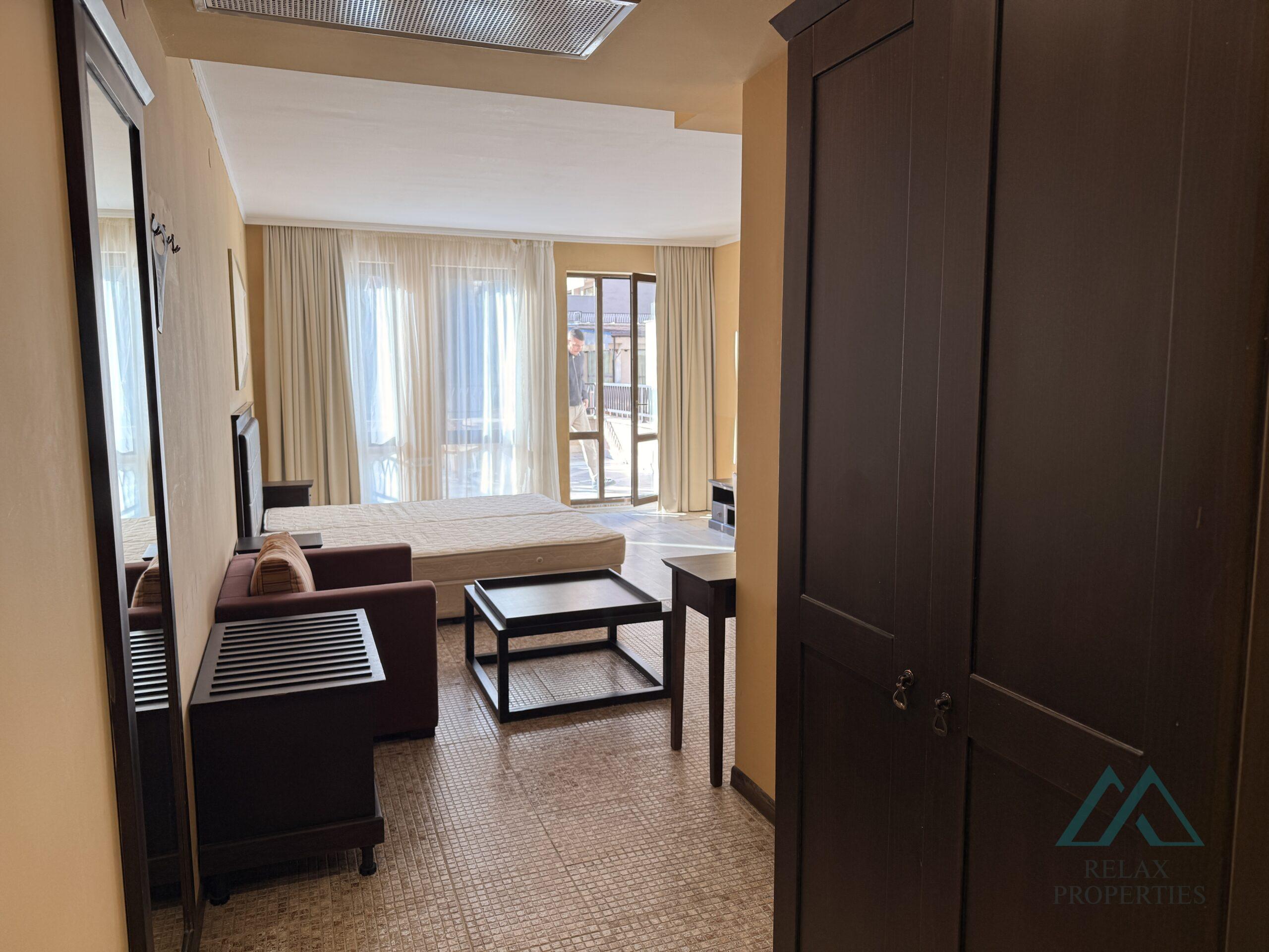 Certifikovaná realitní kancelář Relax Properties nabízí k prodeji moderní, prostorný studio s velkou terasou s výhledem na bazén, který se nachází v prestižním 5hvězdičkovém komplexu Barcelo Royal Beach, přímo na pobřeží v centru oblíbeného letoviska Slunečné pláže v Bulharsku.