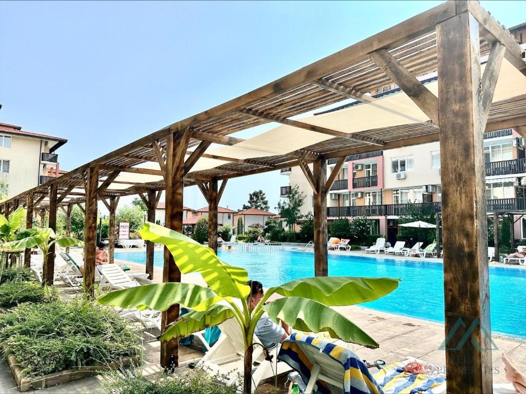 Nabízíme k prodeji za atraktivní cenu velmi pěkný 2+kk byt v oblíbeném celoročním rezidenčním komplexu Chateau Aheloy 2 v klidném letovisku Aheloy v Bulharsku, jen pár kroků od moře a písečné pláže.