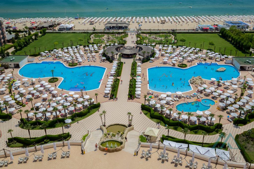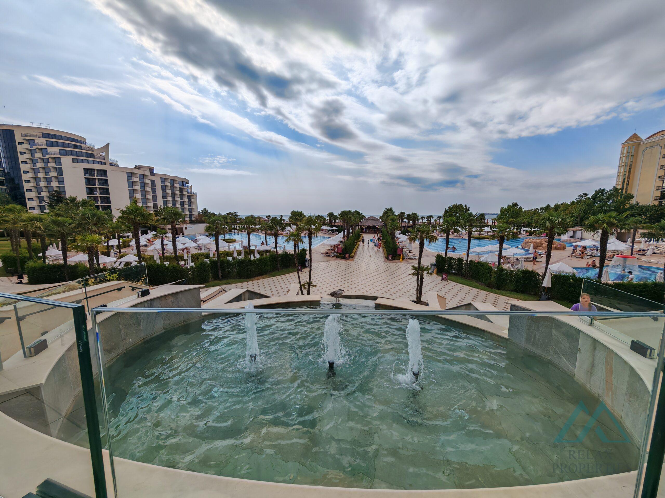 Realitní kancelář Relax Properties nabízí k prodeji velký 2pokojový apartmán s nádherným panoramatickým výhledem na moře v luxusním 4hvězdičkovém hotelovém komplexu DIT Majestic Beach Resort, který se nachází přímo na pobřeží u pláže v oblíbeném letovisku Slunečné pláži.