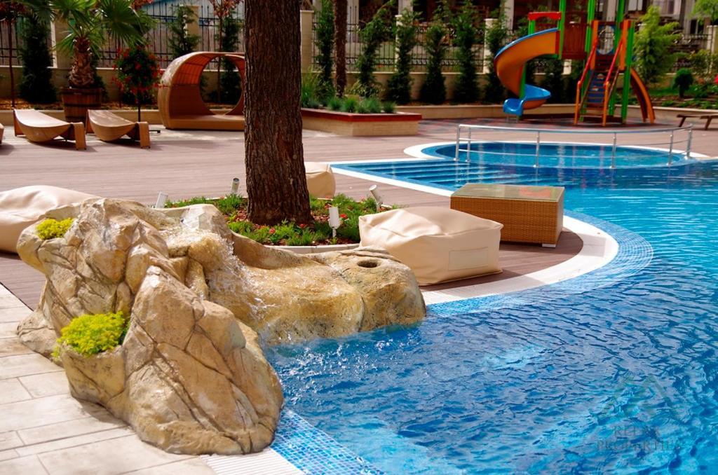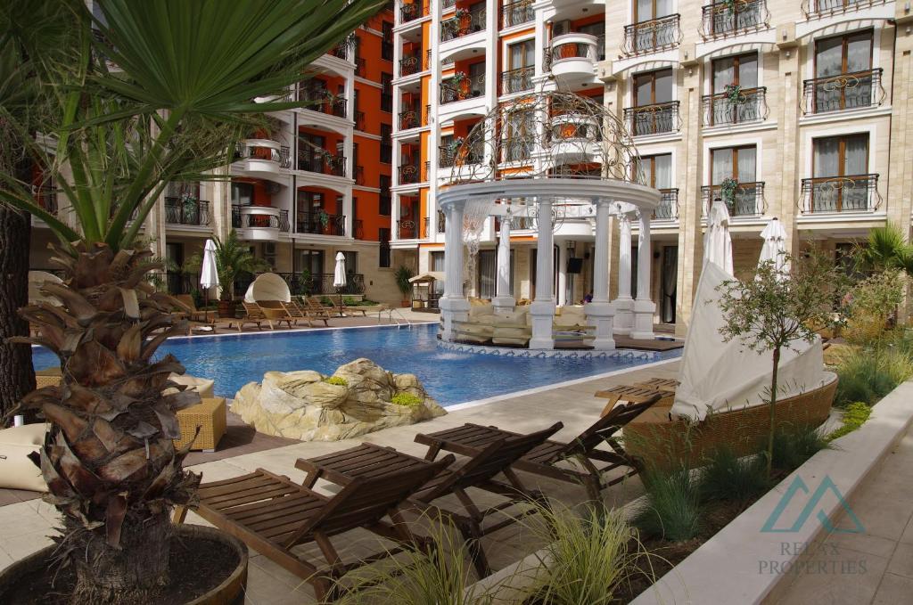 Nabízíme k prodeji luxusní apartmán 2+kk o rozloze 47 m², který se nachází v uzavřeném komplexu Harmony Palace na Slunečním pobřeží, pouhých 400 metrů od moře.