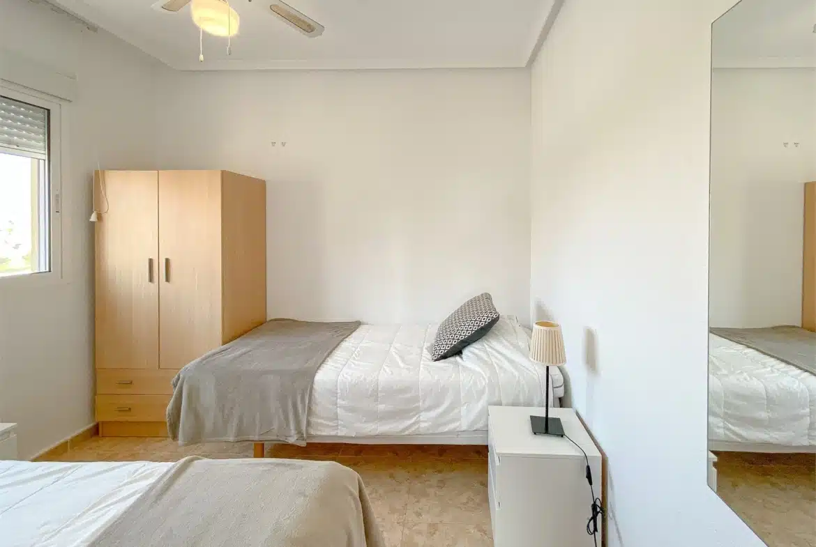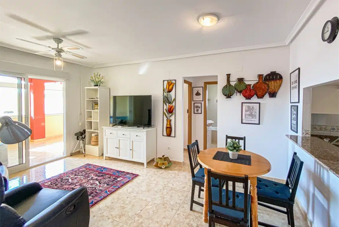 Byt je vybaven klimatizací, kompletně zařízený spotřebiči a zahrnuje také soukromé parkovací místo v uzavřené komunitě. Poloha je velmi výhodná – jen pár minut od pláže La Mata, supermarketů, restaurací a obchodů. Základní informace: