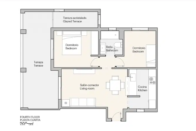 Nabízíme k prodeji slunný a zařízený byt o obytné ploše 76 m² a pozemku o rozloze 20 m², situovaný v klidné komunitě s bazénem a upravenými zahradami. Dispozice se skládá ze 2 ložnic, 1 koupelny, plně vybavené kuchyně a prostorného obývacího pokoje s jídelním koutem. Hlavní místnost se otevírá na velkou terasu, ideální pro relaxaci, posezení a vychutnání večera s výhledem na okolí.