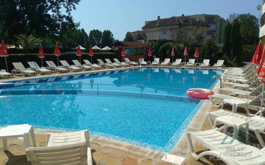 Referenční číslo: B_3628 Realitní kancelář Relax Properties nabízí k prodeji velmi pěkný a kompletně zrekonstruovaný studio o celkové ploše 45 m², který se nachází v oblíbeném komplexu Blue Summer v letovisku Slunečné pláži. Nemovitost se nachází v jedné z nejpraktičtějších částí letoviska, ideální nejen pro rekreaci, ale i pro celoroční bydlení. V docházkové vzdálenosti od komplexu se nachází několik velkých supermarketů, trh s ovocem a zeleninou, lékárna, centrální autobusové nádraží, kavárny a restaurace. Aquapark Action je vzdálen pouhých 1,4 km a letiště Burgas 28 km. Komplex je vzdálen 7 minut chůze od moře. Studio se nachází v přízemí a skládá se z obývacího pokoje s prostorem na spaní, kuchyňského koutu a koupelny se sprchovým koutem. Prodává se kompletně zařízené, vybavené elektrickými spotřebiči a ve výborném stavu – nedávno renovované s novým nábytkem. Dispozice studia: obývací pokoj s prostorem na spaní kuchyňský kout