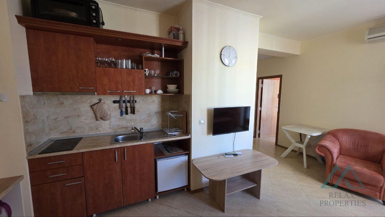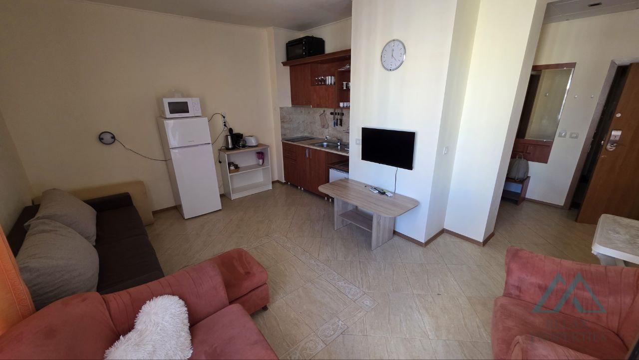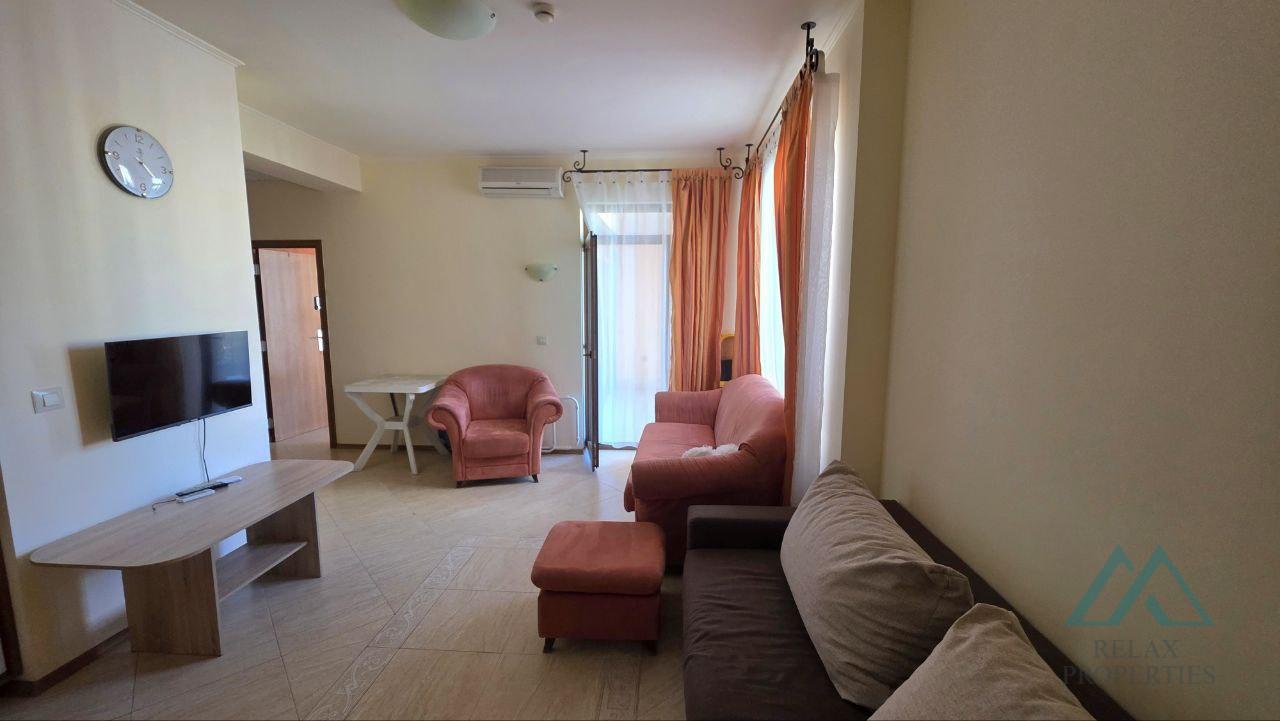 Referenční číslo: B_3605 Realitní kancelář Relax Properties vám nabízí prostorný, dobře udržovaný a plně zařízený 2pokojový byt v oblíbeném hotelovém komplexu Palazzo v letovisku Slunečné pobřeží v Bulharsku. Komplex se nachází 200 metrů od moře a písečných pláží. Komplex je otevřen sezónně od května do konce září. Byt má rozlohu 72 m² a nachází se ve 4. patře s výtahem. Prodává se kompletně zařízený a vybavený, připravený k okamžitému užívání nebo pronájmu. Nemovitost je ve výborném technickém stavu, světlá, prostorná a s příjemným výhledem na bazén.