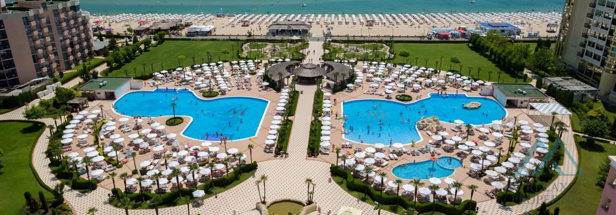 Moderní plážový resort se nachází přímo na první linii moře u krásné dlouhé písečné pláže Slunečného pobřeží, na začátku 8 km dlouhé promenády vedoucí až do historického města Nesebar (UNESCO). Resort je známý svými kvalitními službami, bohatou nabídkou aktivit a animačních programů pro děti i dospělé.