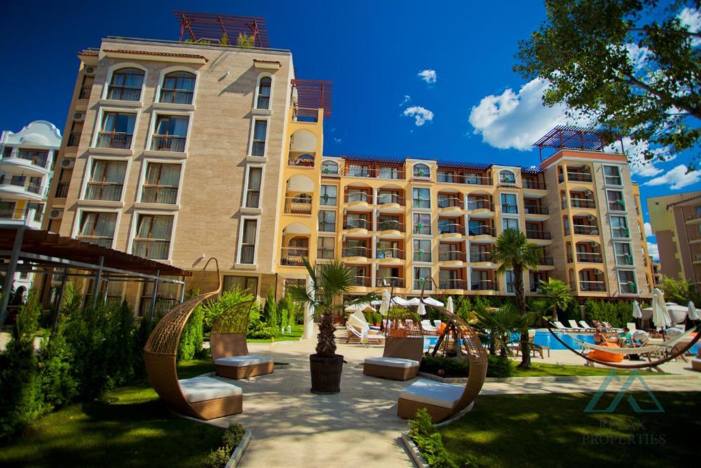 Harmony Suites 1 se nachází v klidné části Slunečného pobřeží, pouhých 700 metrů od písečné pláže a v pěší vzdálenosti od obchodů, restaurací a zábavních atrakcí.