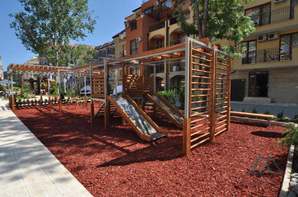 Komplex se skládá ze tří samostatných budov, které se rozkládají v krásně upravených zahradách se dvěma bazény, dětským hřištěm, volejbalovým hřištěm a relaxačními zónami.