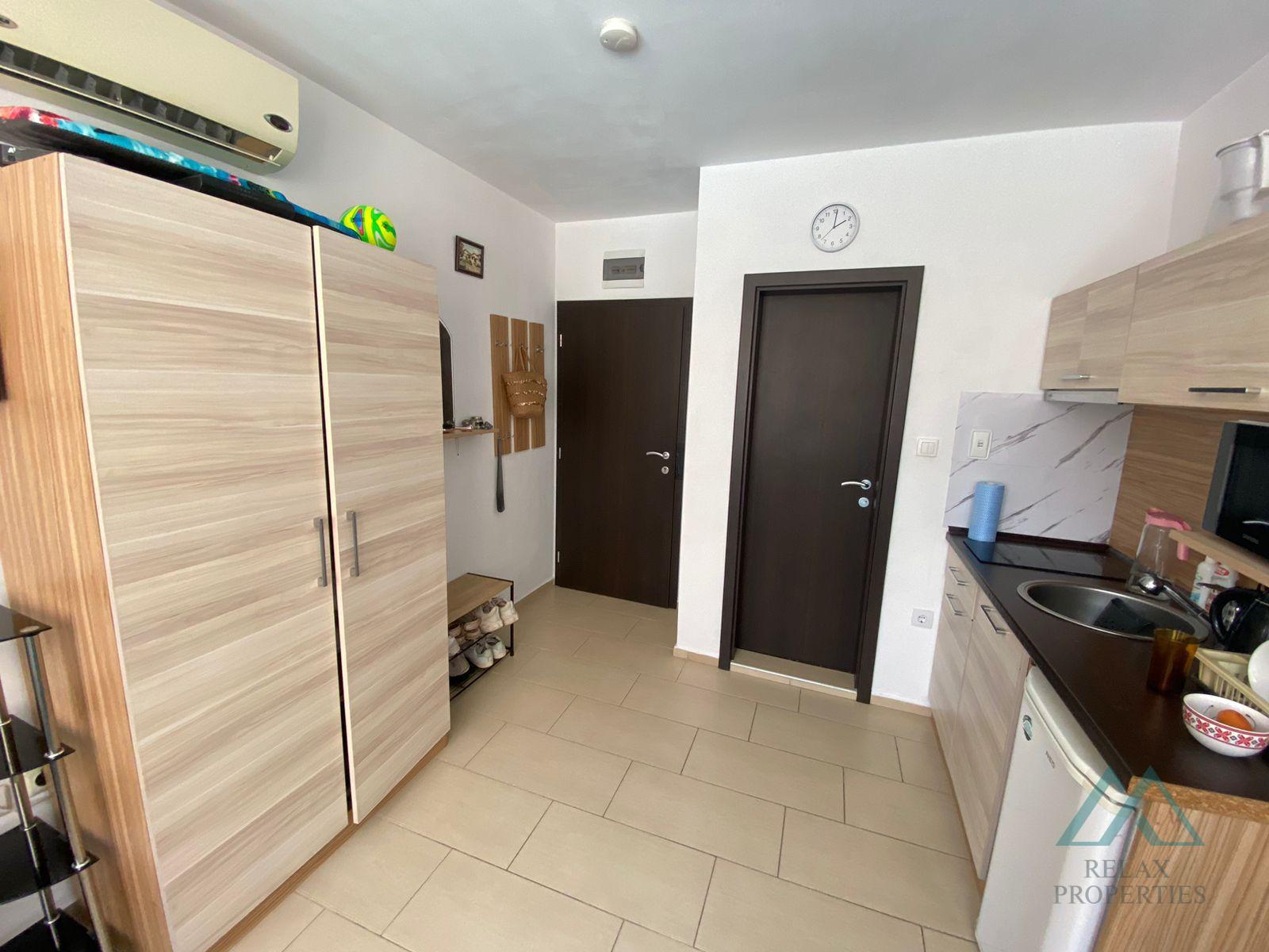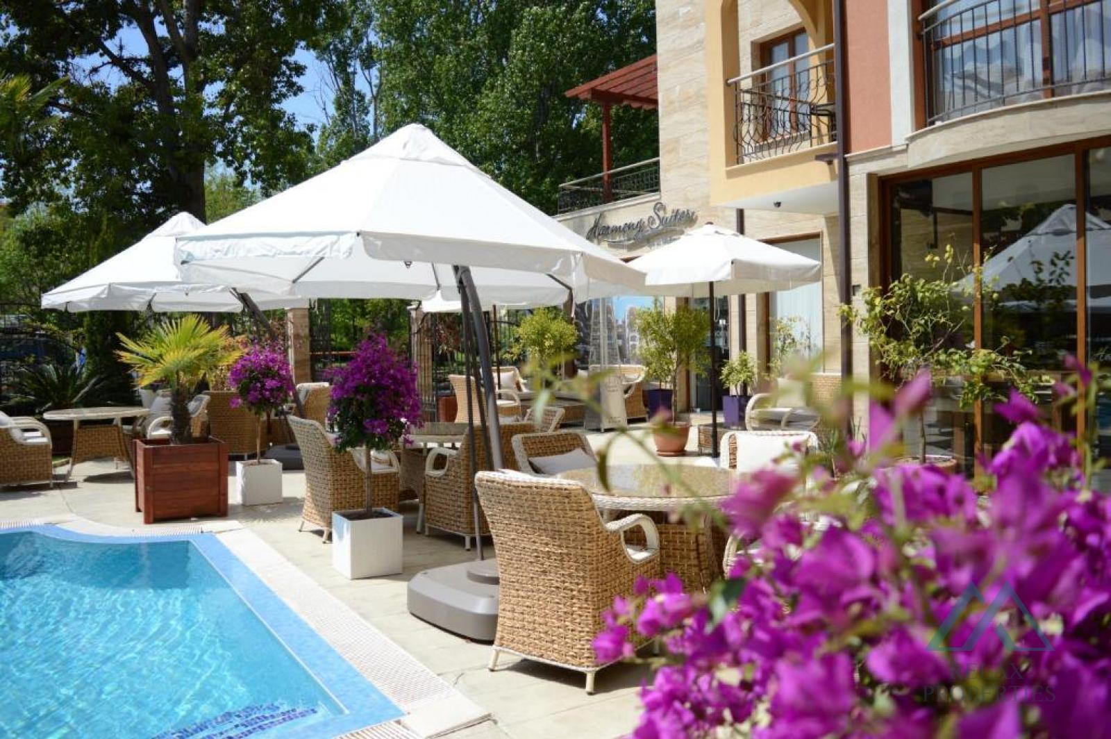 Certifikovaná realitní kancelář Relax Properties Vám nabízí k prodeji útulné a plně zařízené studio s výhledem na bazén v oblíbeném celoročním komplexu Harmony Suites 1 na Slunečném pobřeží v Bulharsku, pouhých 700 metrů od moře.